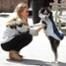 Those eyes! The actress says hello to a cute canine while on set in NYC.